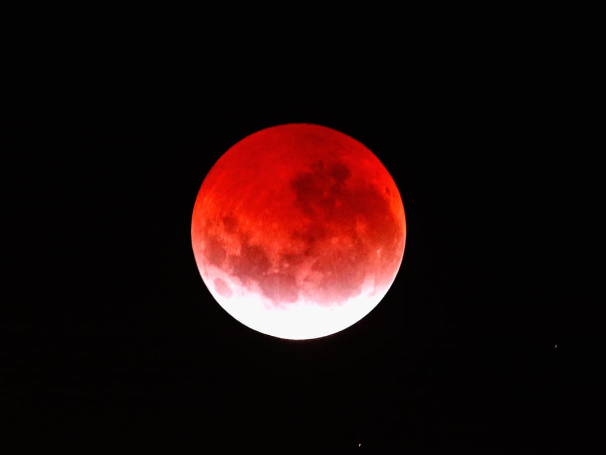 Fenomena warna merah pada bulan ketika gerhana berlaku disebabkan oleh pembiasan cahaya matahari oleh atmosfera bumi. Cahaya biru tersebar lebih banyak, manakala cahaya merah terus sampai ke permukaan bulan, menjadikannya kelihatan kemerah-merahan.